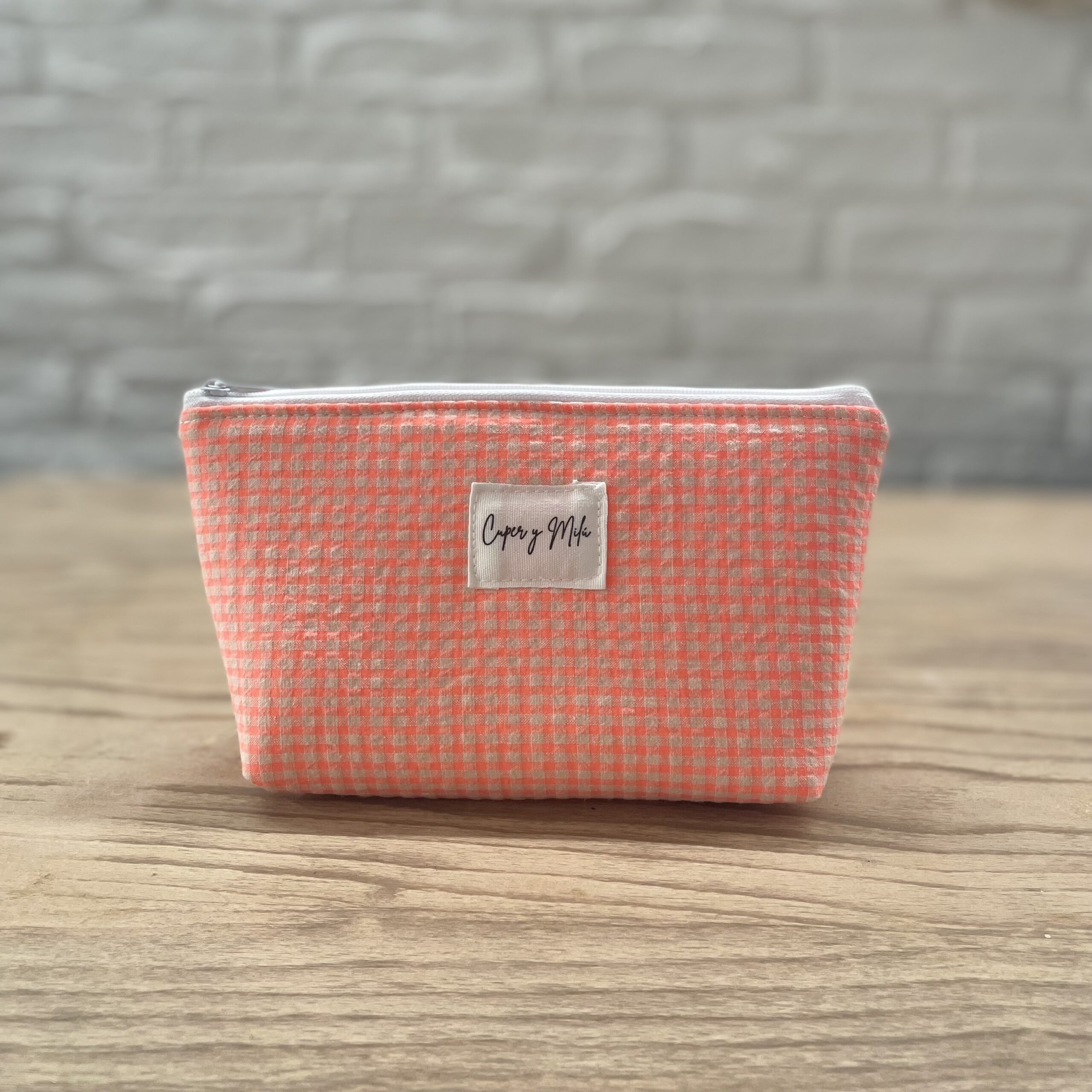 Neceser Kira mini vichi seersuker naranja fluor.